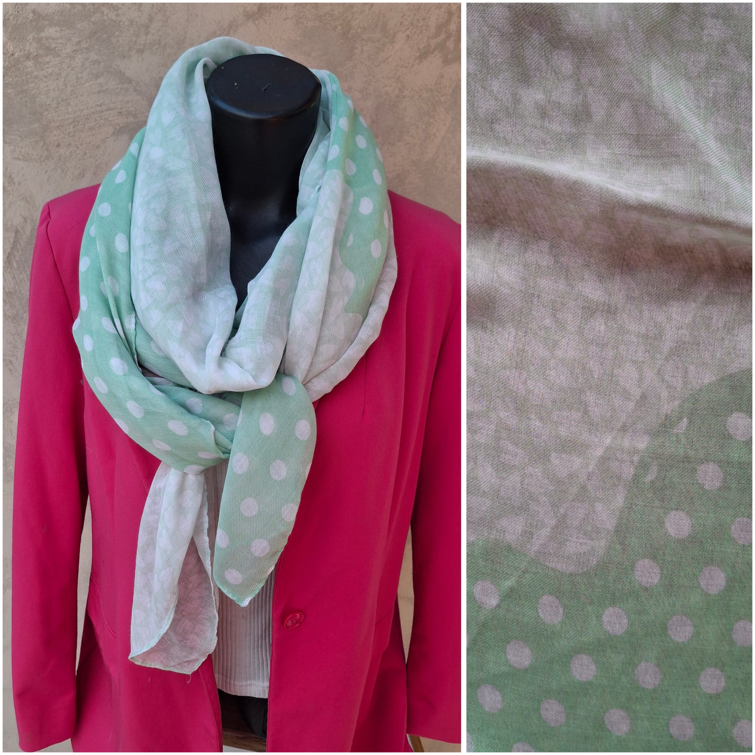 Foulard rectangle motifs pois et cœurs roses. 20% coton.  Léger et doux.