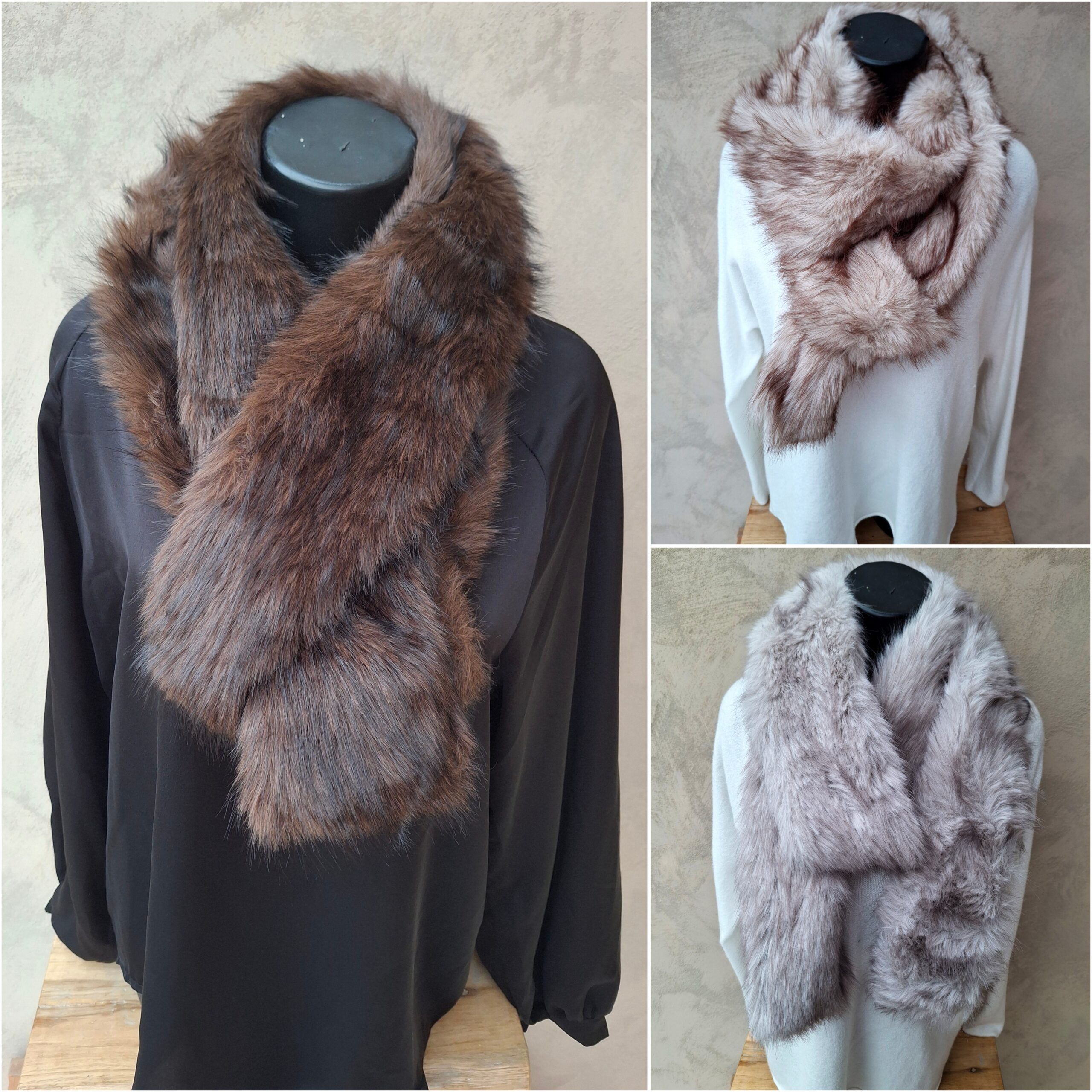 Apportez une touche de classe à vos tenues avec cette superbe écharpe en fausse fourrure.